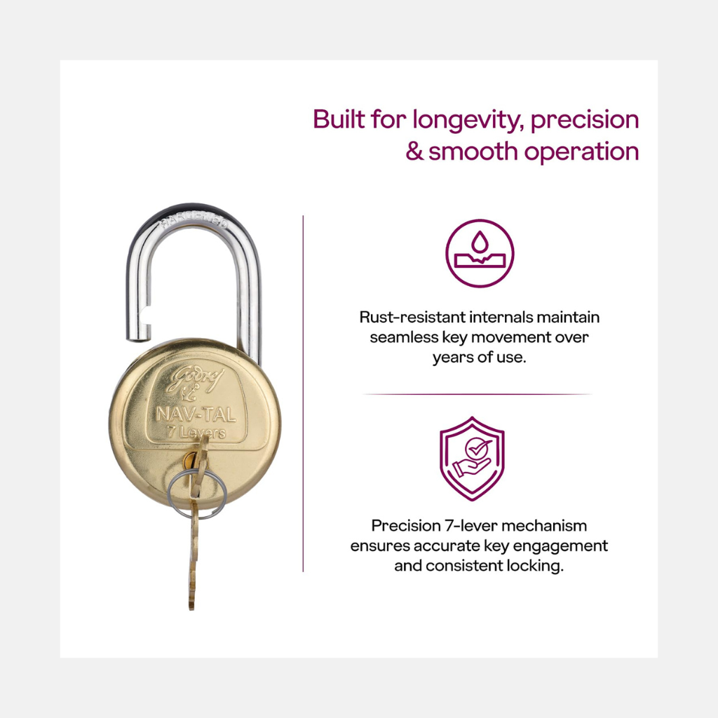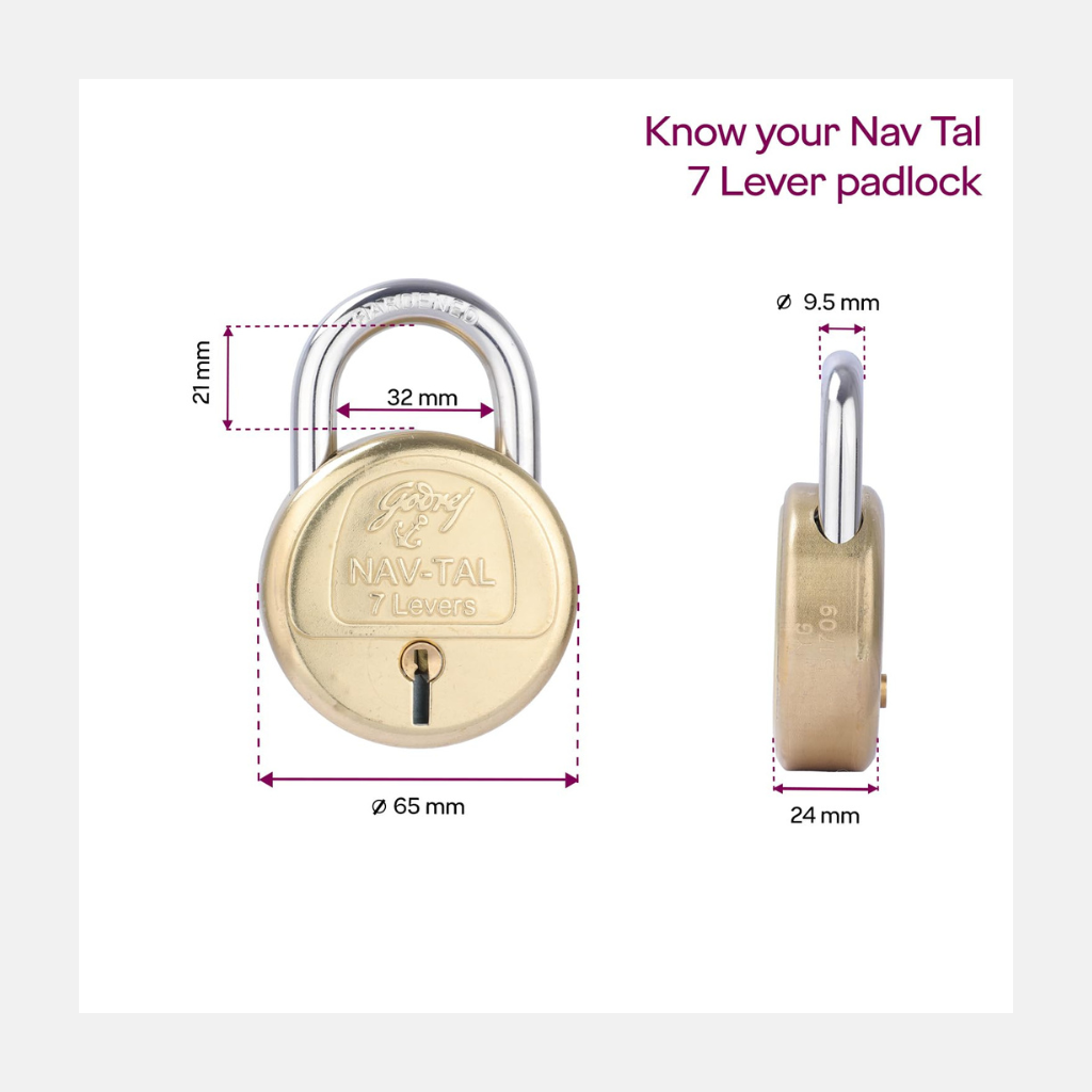 Godrej Locks I Navtal 7 levers 65 mm I 2 Keys I Padlock